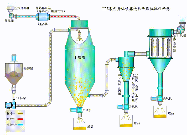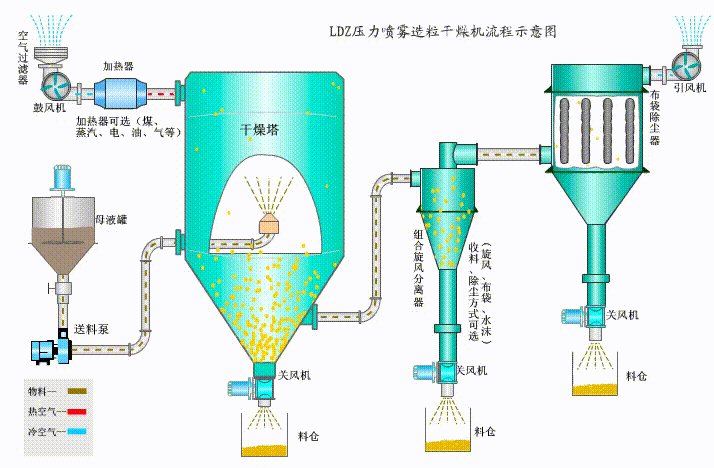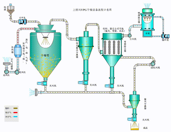 壓力噴霧干燥塔是一個把原料液放入霧化器內分離為霧滴,以熱空氣或者別的氣體和霧滴直接接觸的辦法來獲取粉粒形狀產品的干燥過程。在20世紀三四十年代。噴霧干燥技術已普遍應用于洗滌劑、乳制品、脫水食品、染料、水泥、化肥的生產過程中。目前常見的奶粉、速溶咖啡、方便食品湯料等便是從噴霧干燥過程中獲得的產品。 初,噴霧干燥技術應用于我國乳品行業,后來相繼被制藥、染料與洗滌劑等等行業應用,如今噴霧干燥技術在我國的應用已普遍。特別是在制藥與陶瓷行業。噴霧干燥的運用普遍。噴霧干燥技術在制藥行業有著特殊的用途,簡化且縮短了中藥提取液至制劑的半成品或者成品的工藝與時間,提升了生產效率與藥品的質量。